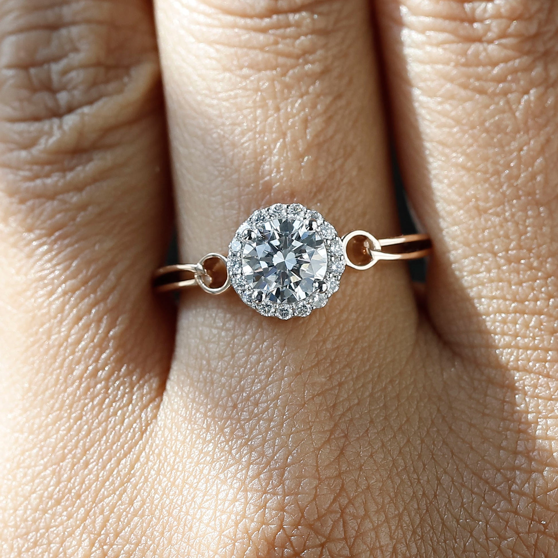 1 CT Lab Grown Hidden Halo Diamond Ring For Her