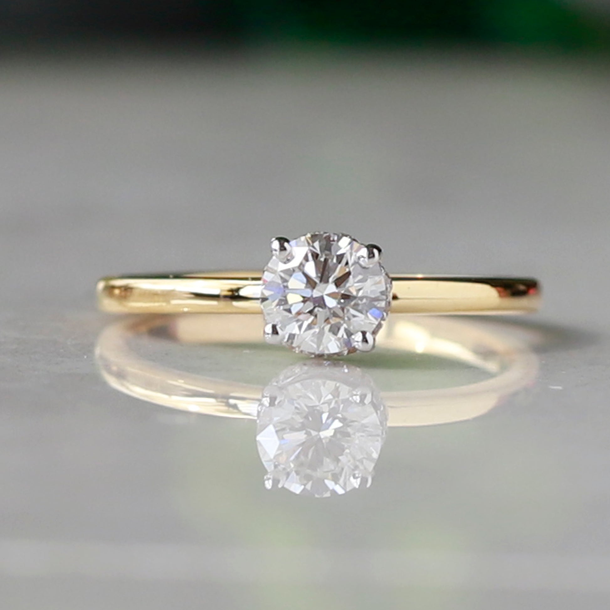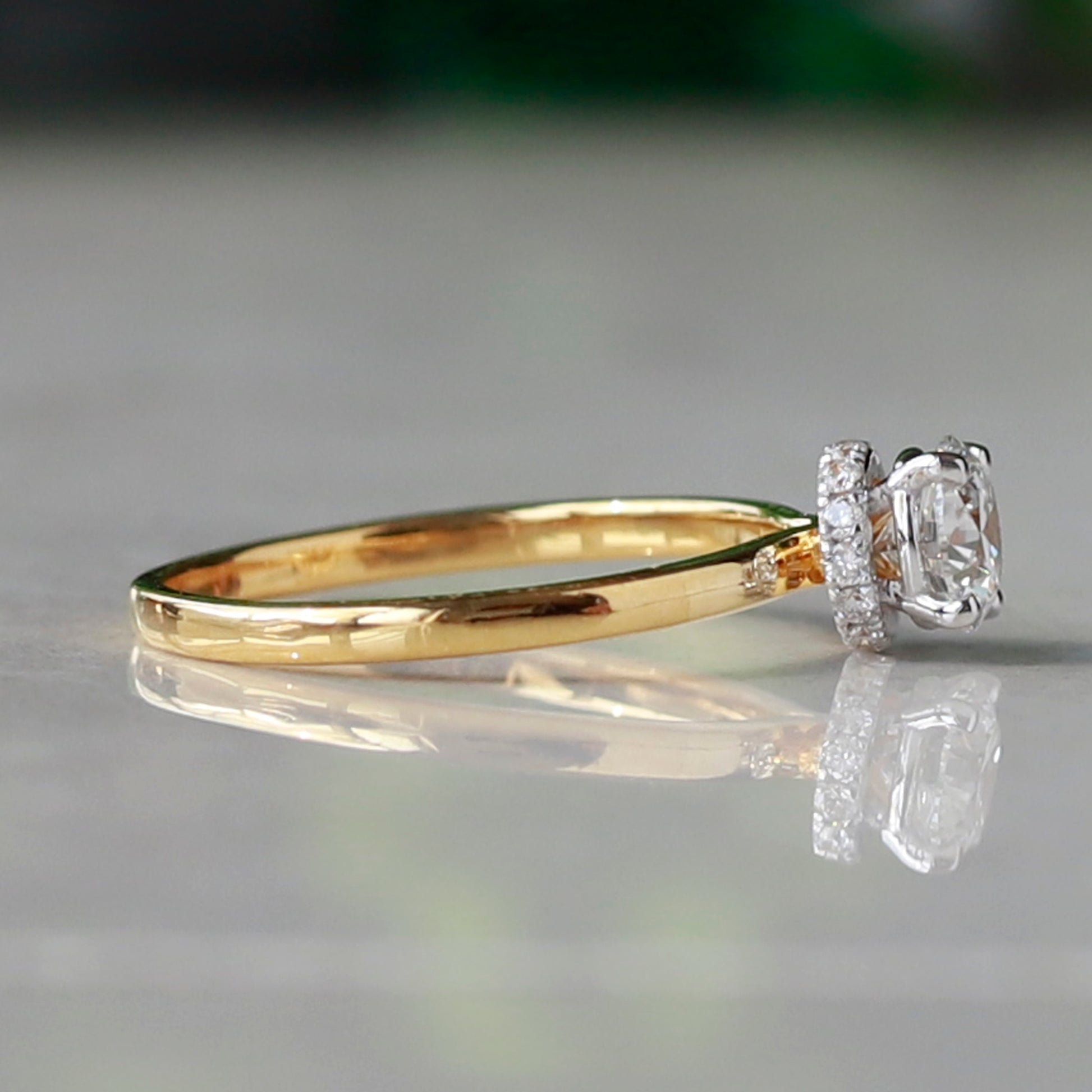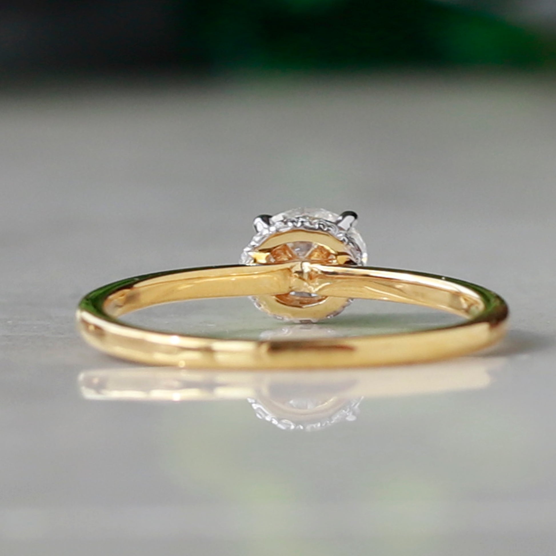 This 14 K Yellow Gold Round Cut Diamond Ring Features Round Cut Lab Grown Diamond Set At The Center In 14K Solid Yellow Gold With Diamond Hidden Halo, This Solitaire Diamond Ring Is Best For Your Engagement Ring To Daily Wear.